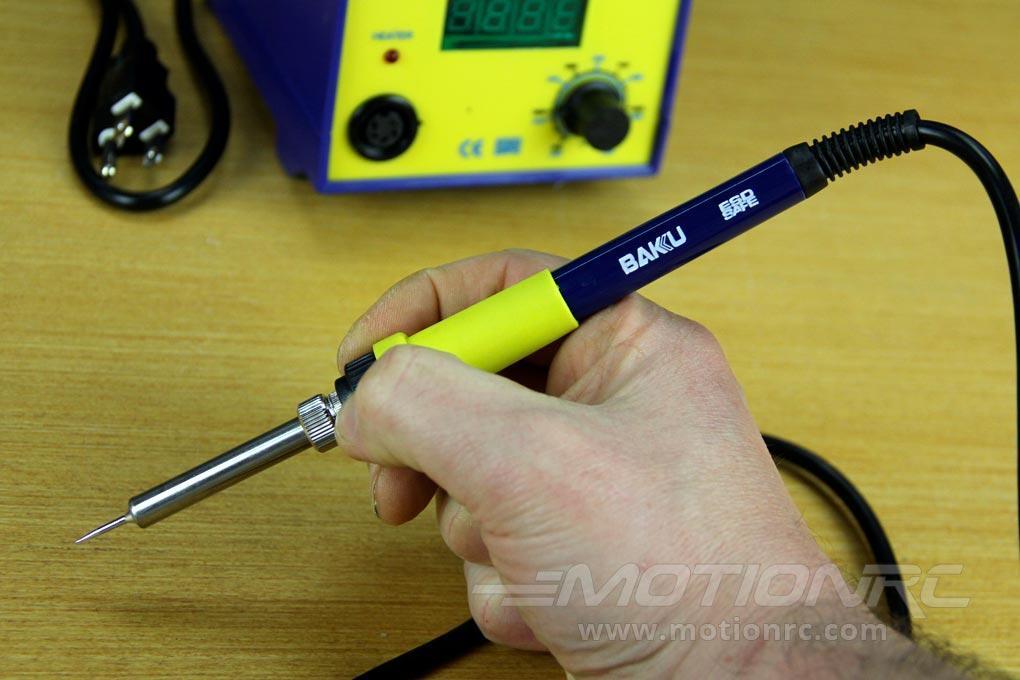 Perfect for the general hobbyist, this soldering station features a precise microprocessor-controlled digital display for its temperature readout. Enjoy this solder station's compact shape on your work area and solder with the peace of mind provided by its ESD-safe electronics which prevent unwanted discharges from damaging your sensitive RC components.