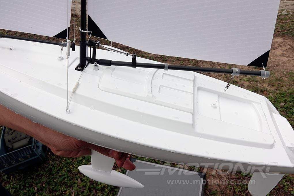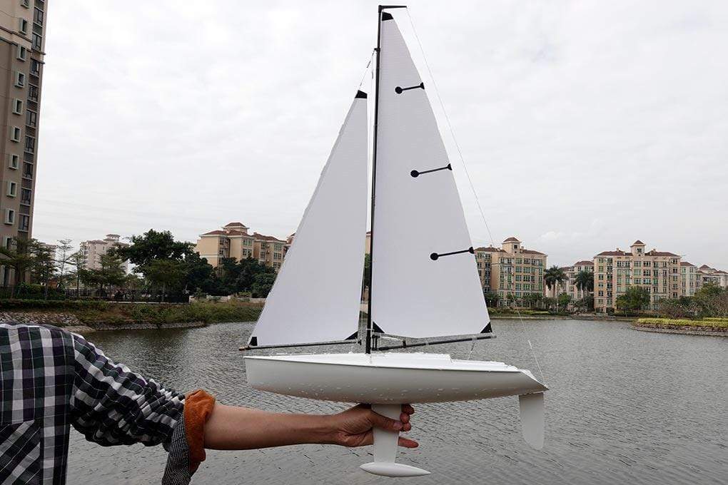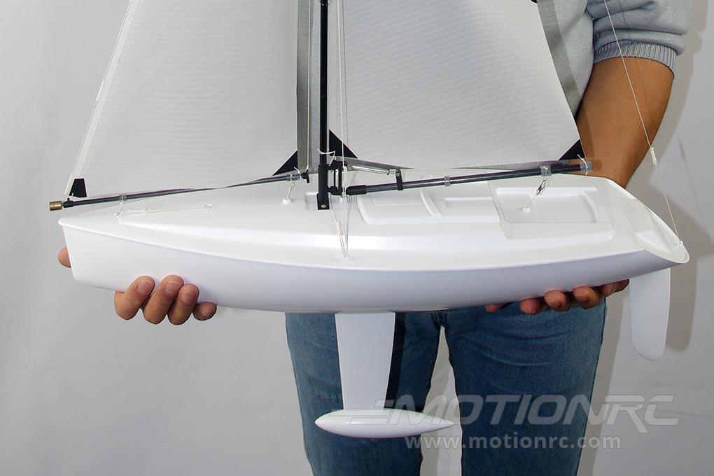 Fully painted with all rigging and sails included and all onboard electronics pre-installed, the Bancroft Sportsail requires only AA batteries for the radio and receiver pack!