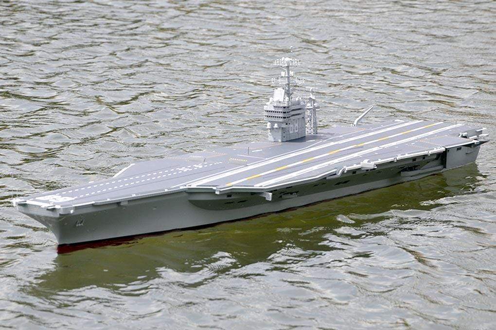 Bancroft’s Elite Series of warships presents the 1/200 scale Aircraft Carrier USS Nimitz! Display this museum piece on your mantle or astonish your RC boat club with this functional RTR (Ready to Run) RC aircraft carrier. Over 300 total parts and 100 man-hours of work is already completed for you. Delivered Ready to Run (RTR), the vessel can be sailing within minutes of arrival, using the included 2.4Ghz radio transmitter, 2s Li-Ion battery, and charger. Only four AA batteries, ballast and minimal assembly is required. Set sail in minutes!