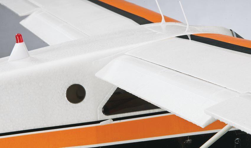 The Flyzone Beaver is one of the newest planes in the Flyzone lineup. The Beaver is one of the best flying, most detailed, best looking planes we have seen in a long time. It includes landing gear with wheels for landing on a street or runway and a float set for landing on a lake, pond, or river. When using the floats, the dual steerable rudders provide excellent control on the water. When using landing gear, the steerable tail wheel also provides good control. There are plenty of scale details on this plane. Our favorite is the lights. This plane has some of the most detailed lights in in both quantity and quality. It is truly capable of night flight. Takeoff and landing is a breeze with this plane. There is plenty of power for loops and rolls which makes the Beaver decently aerobatic.