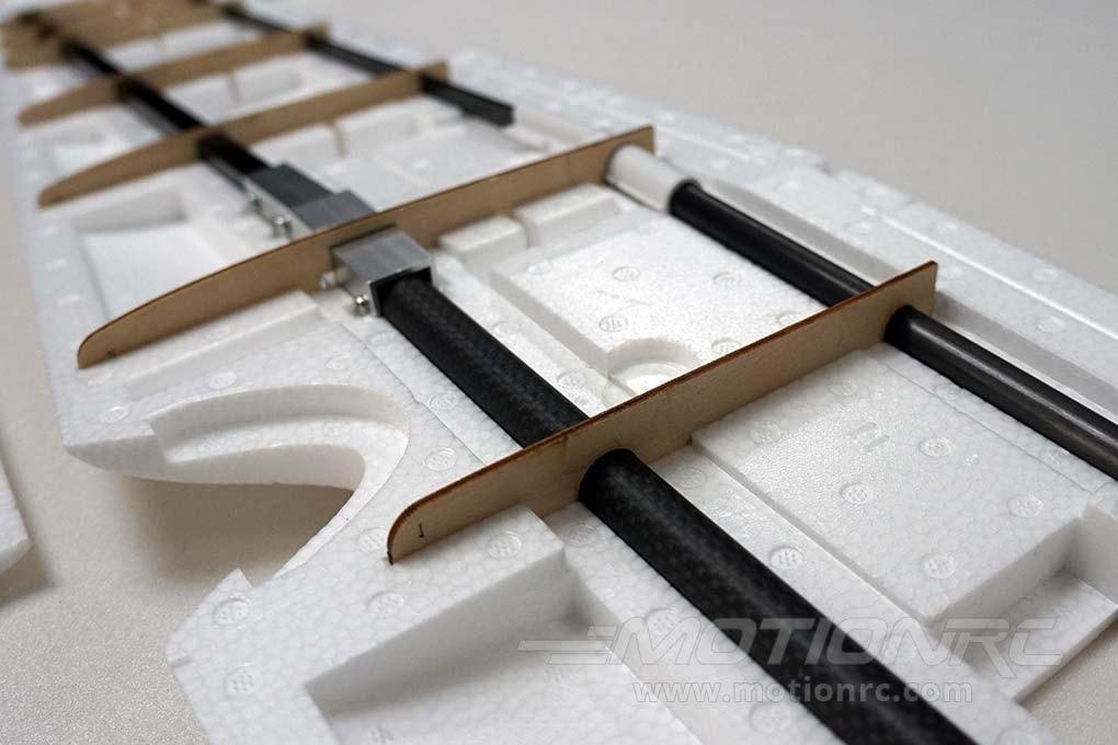 - Multi-material (full carbon fiber spars, plywood ribs, and aluminum blocks) wing structure for best balance of rigidity and smooth flight handling