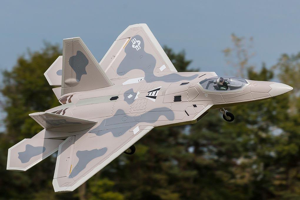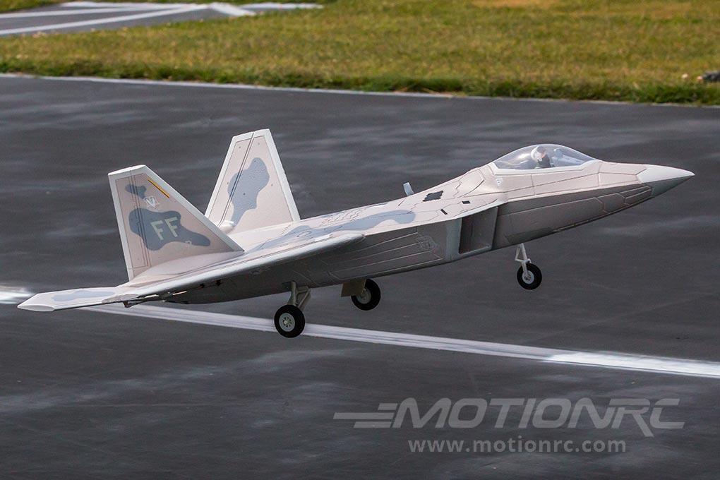 - Fixed, scale landing gear design helps keep the F-22 lightweight and also improves the model's flying life