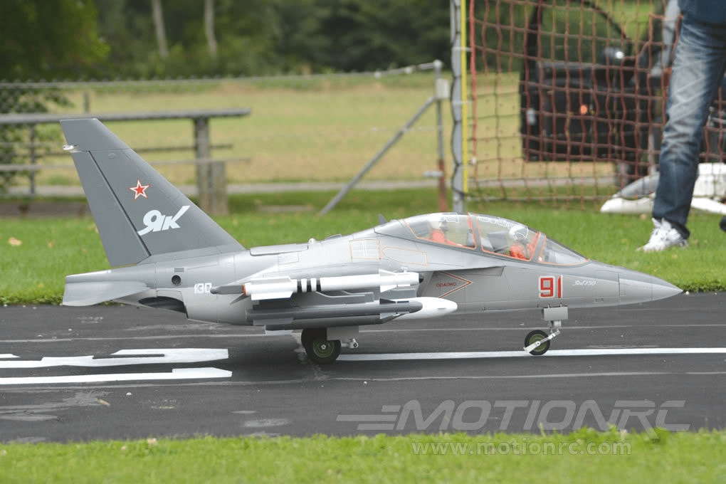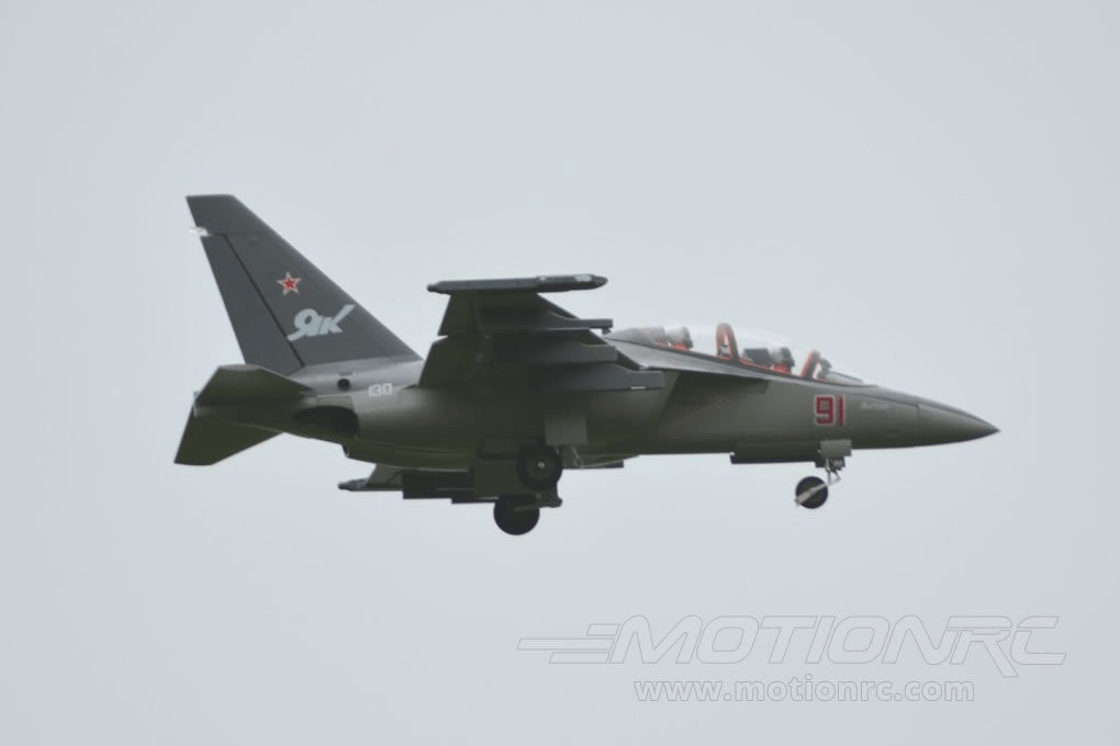 Motion RC has partnered with Freewing to offer you the most highly detailed, scale foam RC jet available on the market - the Yakovlev Yak-130. Designed as a trainer/light attack aircraft and entering into service in 2009, the Yak-130 is the most advanced trainer utilized by the Russian Air Force. In designing this aircraft, Freewing has captured literally every detail of the full-size aircraft from the full painted ordinance to the two-seat cockpit with detailed instrument panels. High end electronics and hardware are abound on this model from the super bright 3W navigation and landing lights to shock absorbing aluminum landing gear to the metal gear servos on every control surface. This 8S version of the Yak-130 is powered by a massive 1250kV motor and Hobbywing 150A ESC, and with its 12 blade fan with metal housing, the Yak sounds every bit as good as it looks. If you typically fly 5 and 6 blade EDF jets, you'll be blown away at the sound this 12 blade EDF produces. While 5 and 6 blade EDF produce a high pitched whining sound, the 12 blade EDF with metal housing produces the "whoosh" and air crushing sound similar to a gas turbine jet. If you are a scale jet flyer looking for top of the line quality and superb detail, the Freewing Yak130 will not disappoint.