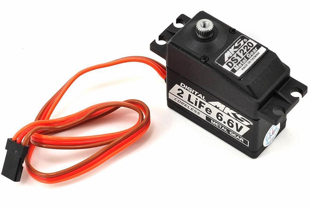 This is the MKS DS1220 Titanium Gear High Torque Digital Servo. The DS1220 is a low cost water resistant, titanium gear servo that is well suited to surface and aircraft applications, and is an excellent upgrade servo choice for the Roban 600/700 and 800 Series Scale Helicopters. The DS1220 can be used as cyclic servo in any size Roban helicopter.
